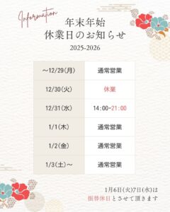2024年12月14日 / 最終更新日時 : 2024年12月14日 kojika_x31@gmail.com Uncategorized 年末年始の営業のおしらせ \ 最新情報をチェック / FacebookXBlueskyHatenaCopy コメントを残す コメントをキャンセルメールアドレスが公開されることはありません。 ※ が付いている欄は必須項目ですコメント ※ 名前 ※ メール ※ サイト 次回のコメントで使用するためブラウザーに自分の名前、メールアドレス、サイトを保存する。 上に表示された文字を入力してください。 Δ
